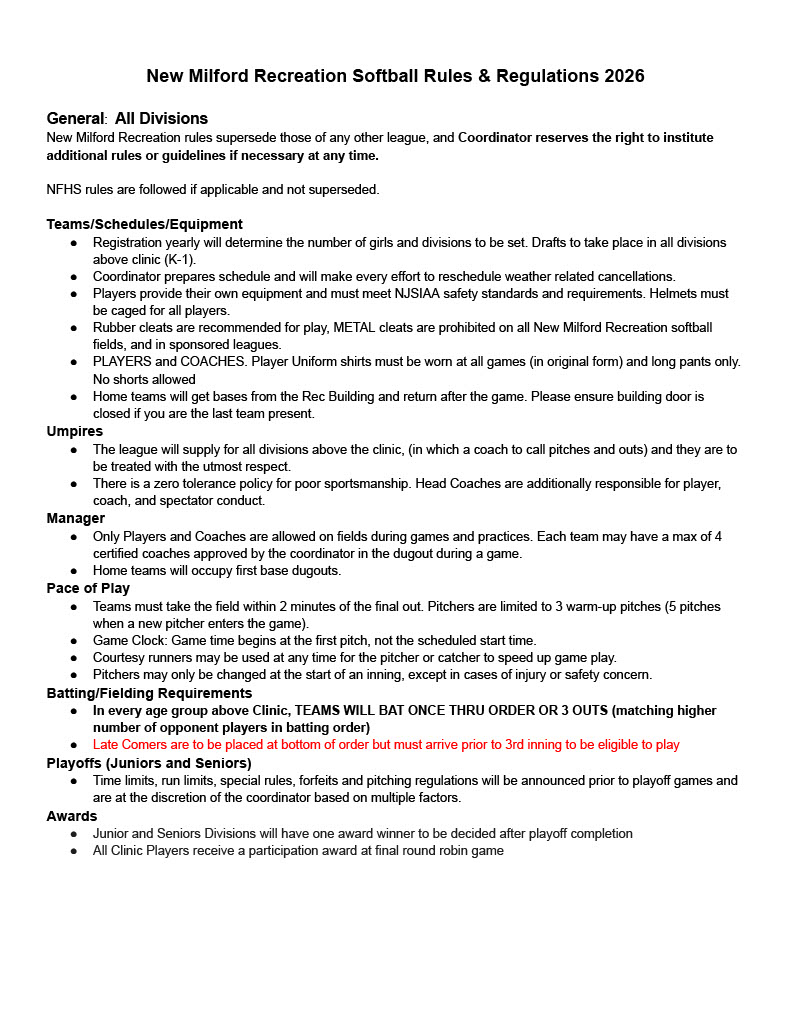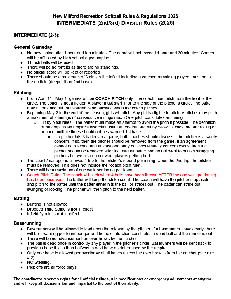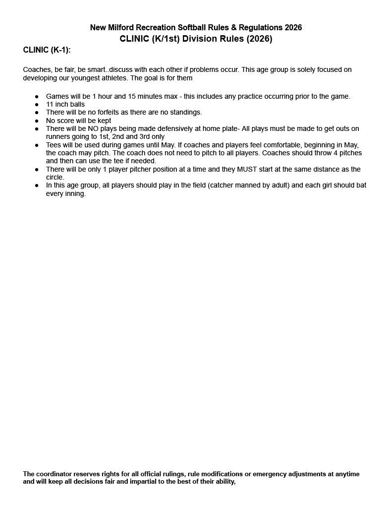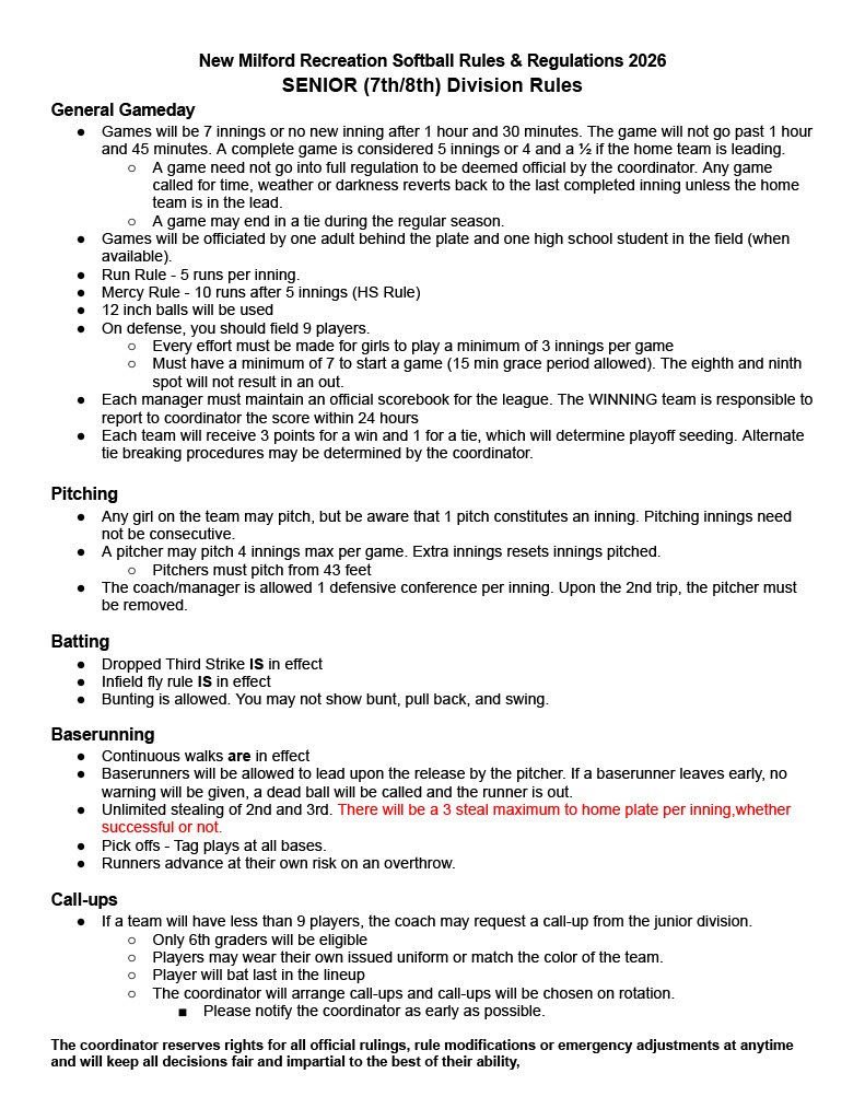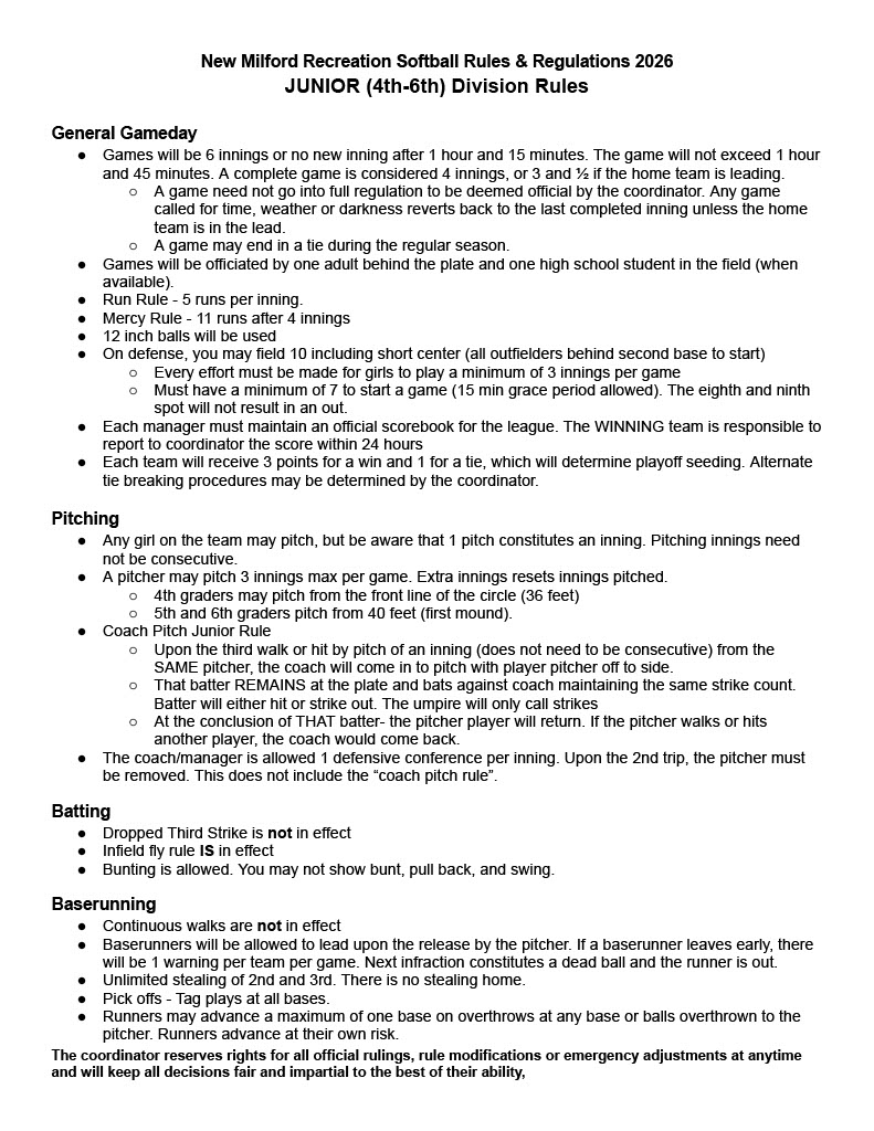 REC SOFTBALL RULES BASKETBALL RULES All Levels Rec Basketball Rules Link 3rd/4th Grade Basketball Rules REC SOCCER RULES Page 1